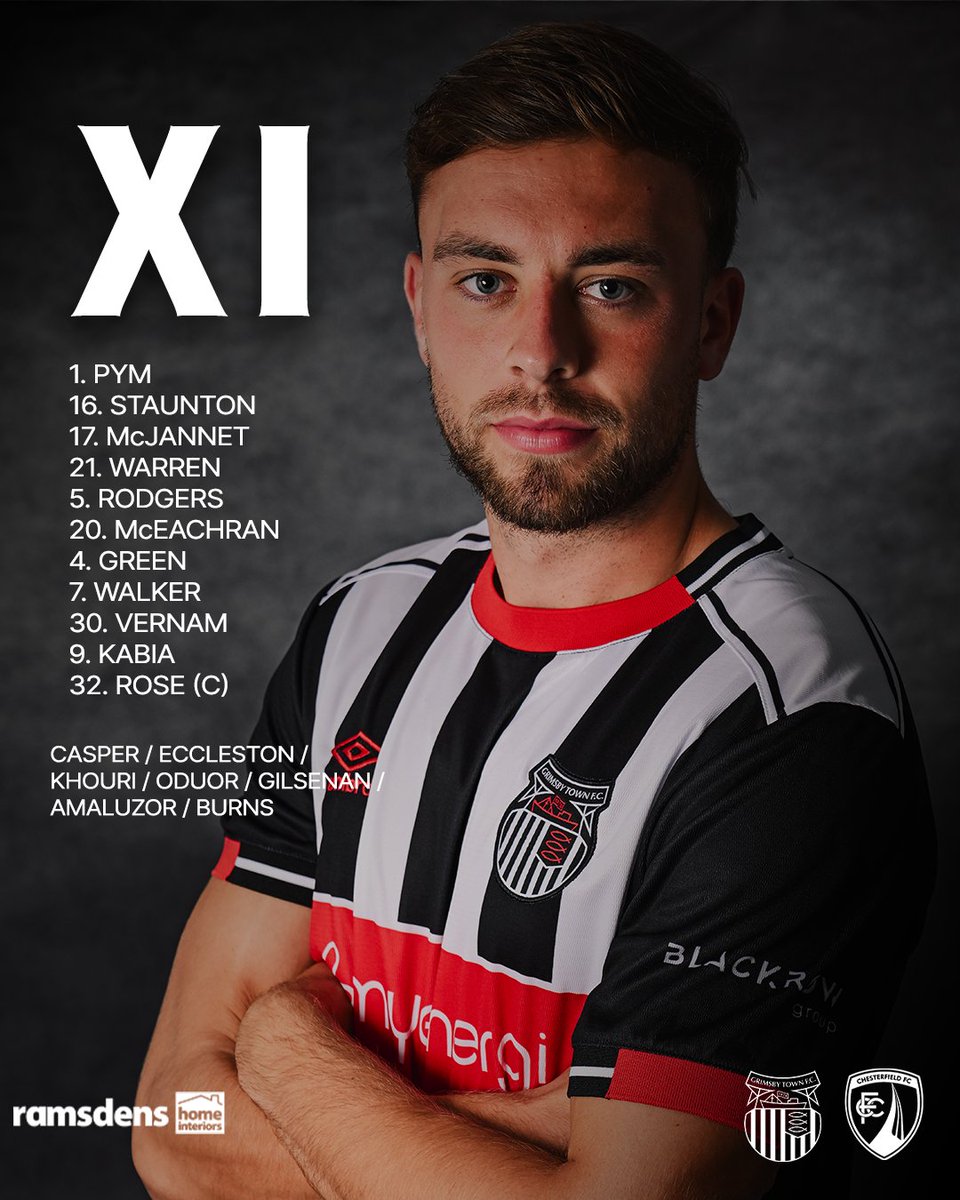 Grimsby (4-3-3): 1. Christy Pym – 5. Harvey Rodgers, 21. Tyrell Warren, 17. Cameron McJannet, 16. Reece Staunton – 4. Kieran Green, 20. George McEachran (29. Clarke Odour 77′), 7. Jamie Walker (8. Evan Khouri 77′) – 9. Jaze Kabia (14. Justin Amaluzor 66′), 32. Danny Rose (C) (19. Zak Gilsenan 77′), 30. Charles Vernam (33. Charlie Casper 54′). Innbyttere: 12. Neo Eccleston, 18. Darragh Burns.